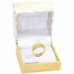 Hot Sale 😉 Charter Club Gold-Plate Cubic Zirconia Split Halo Ring, Created For Macy’s ✔️