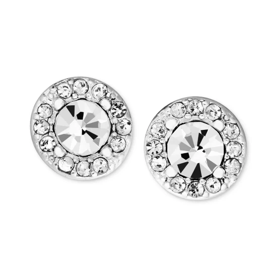 Take your look into another orbit with these spectacular studs. Circular earrings by Charter club feature a round-cut crystal center surrounded by a halo of crystal accents. Crafted in silver-tone mixed metal.