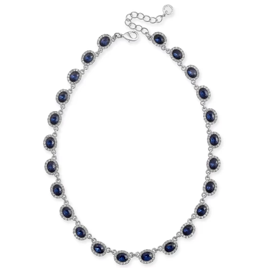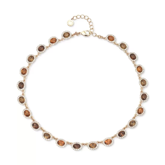Colored crystals sit amid rings of pavé on this pretty collar necklace by Charter Club.