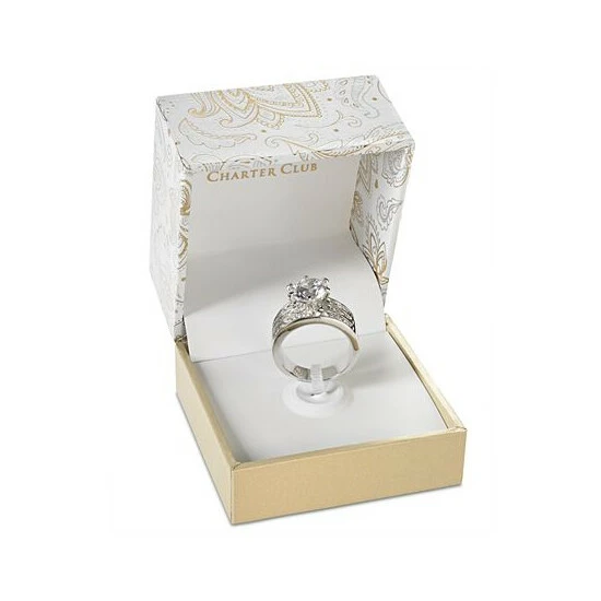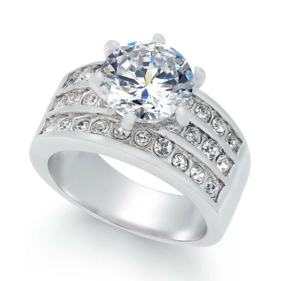 Show a little sparkle with this dazzling ring by Charter Club, flaunting three rows and a single large crystal set in fine silver plate or gold plate. Sizes 5-10