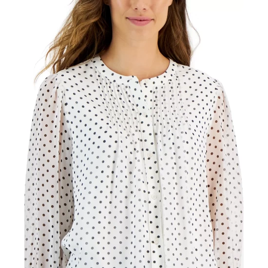 Pintucks at the front bring added dimension to this Charter Club top, styled with sheer 3/4-sleeves that come to life with ruffled cuffs.