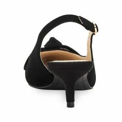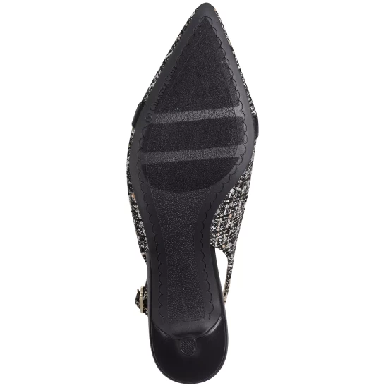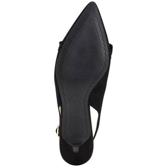 - Pointed-toe slip-on slingback pumps with adjustable buckle closure
