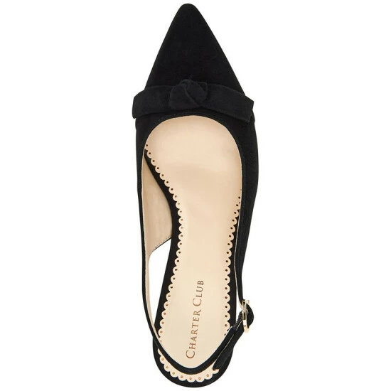 The Giavanna pumps from Charter Club are pointed with pretty bows and a comfortable slingback silhouette with lift on a sweet kitten heel.