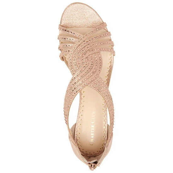 Charter Club’s Ginifur sandals feature slender straps that twist and curve amid sparkling rhinestones set atop a sleek wedge heel for a stunning dressy finish.