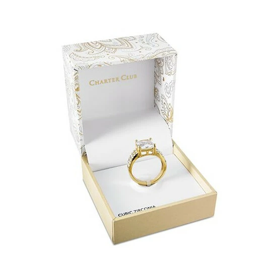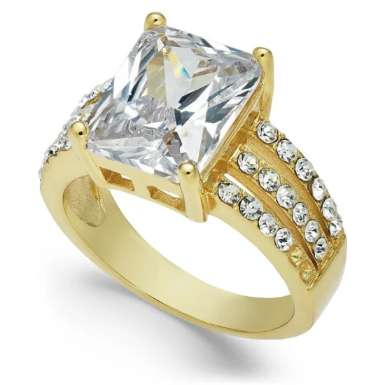 Three pavé-lined rows flank a stunning emerald-cut crystal on this exquisite ring by Charter Club.