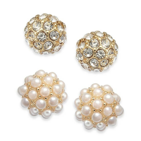 Pick between pavé crystals and petite imitation pearls with this two-piece set of fireball stud earrings created by Charter Club.
