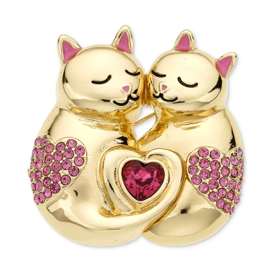 A pair of sweet cats cuddle up on this crystal heart flaunting Charter Club pin, the perfect gift for feline fans.