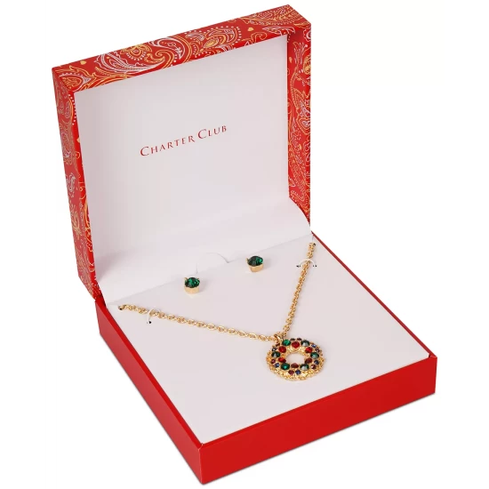 Forget the door – deck yourself out with this festive wreath pendant necklace and stud earrings set by Charter Club.