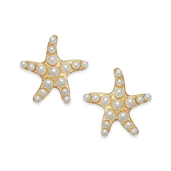 Get superstar style with these cool stud earrings by Charter Club, studded with tiny imitation pearls for added appeal. Set in gold-tone mixed metal. Approximate diameter: 1″.