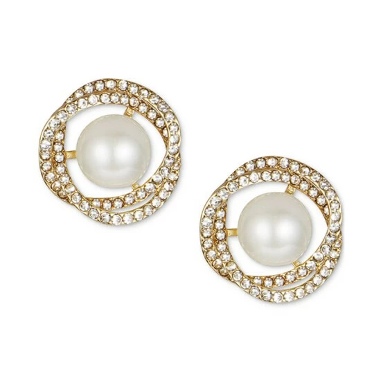 An imitation pearl shimmers amid the intertwined pavรฉ setting of these gorgeous Charter stud earrings.