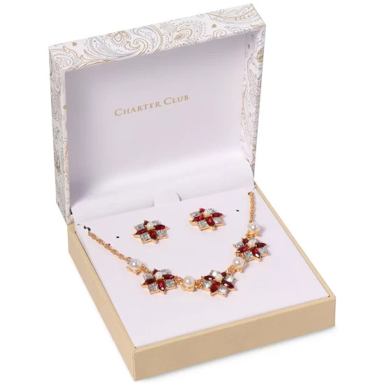 Brightly hued and beautifully styled, this Charter Club boxed necklace and earrings set shows off a gorgeous mixed stone flower motif.