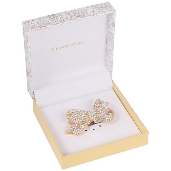 Give your look a sweet gift-like finish with this sparkling tied bow pin from Charter Club.