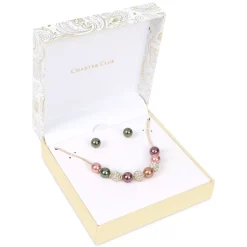 A mix of pavé fireballs and imitation pearls dress up the necklace of this boxed Charter Club set, paired with matching studs.