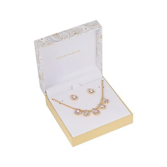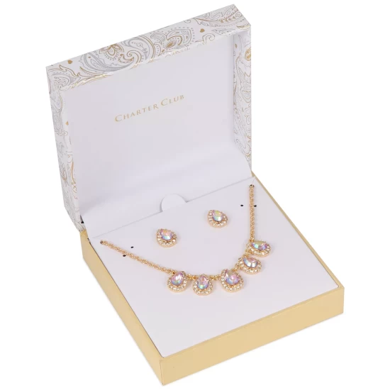 Beautiful pear-shaped halo designs display both pavé crystals and softly-colored stones on this Charter Club necklace and earrings set.
