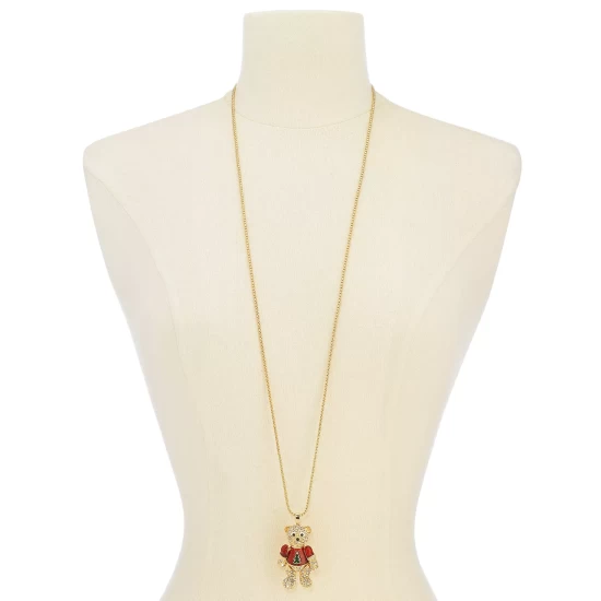 All decked out. Finish your holiday look with this adorably sparkly teddy bear pendant necklace by Holiday Lane.