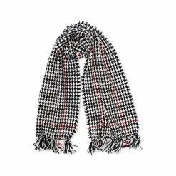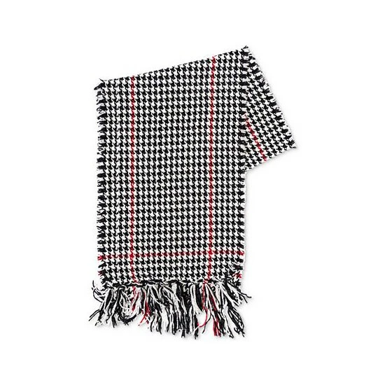 Charter Club brings you a classic houndstooth bordered wrap scarf that isn’t excessively long, tucking nicely into any coat closure, and has chic fringe detail.