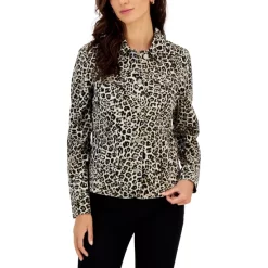 Designed with a hint of comfy stretch, this denim jacket from Charter Club comes alive with a playful leopard print.