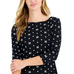 A staple for all seasons, Charter Club’s petite boat-neck top in cotton features 3/4-sleeves for versatility and easy styling.