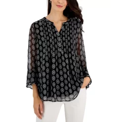 Soft, fun and a little bit sporty, this johnny-collar top from Charter Club looks great with your favorite blue jeans.