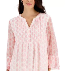Soft, fun and a little bit sporty, this johnny-collar top from Charter Club looks great with your favorite blue jeans.