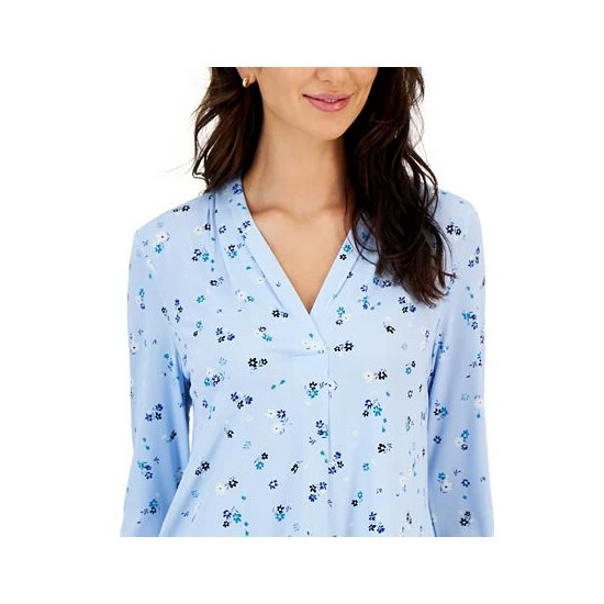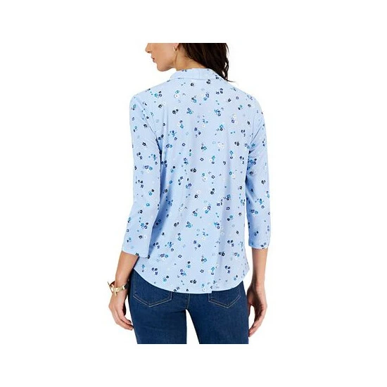 A pretty print and flatter 3/4-length sleeves add extra charm to this petite top from Charter Club.