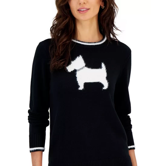 Calling all terrier lovers, this Charter Club sweater will have you feeling all cozy and cute with its classic styling and adorable dog theme.