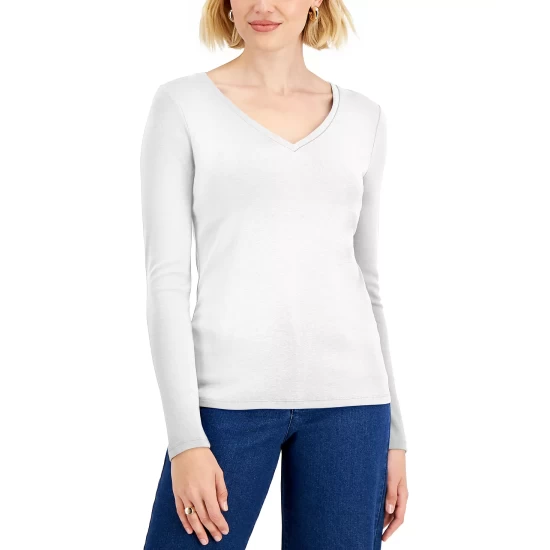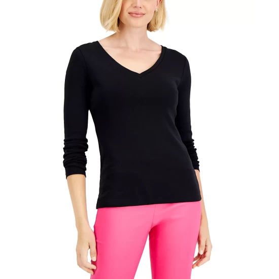Charter Club’s perfectly fitted V-neck top provides a stunning silhouette.