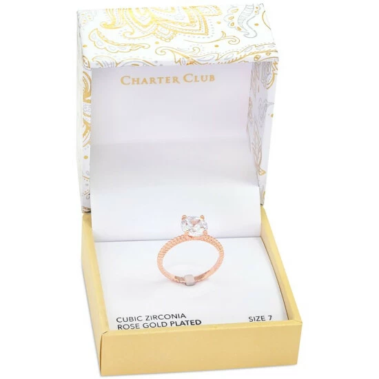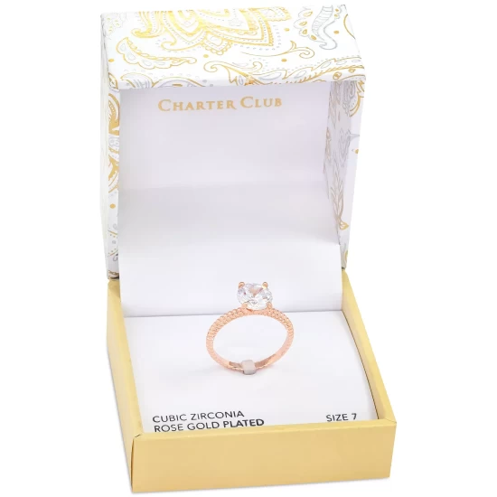 The classic crystal solitaire style is made a little more modern with the addition of a textured band. Ring by Charter Club.