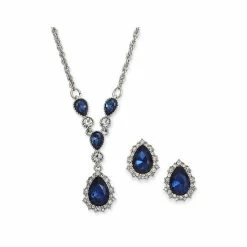 Brighten your style with this exceptional crystal and stone set by Charter Club, including a both a lariat necklace and stud earrings.