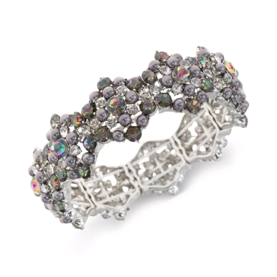 Elegant clusters of crystal and imitation pearl surround your wrist from this gorgeous stretch bracelet. Charter Club.