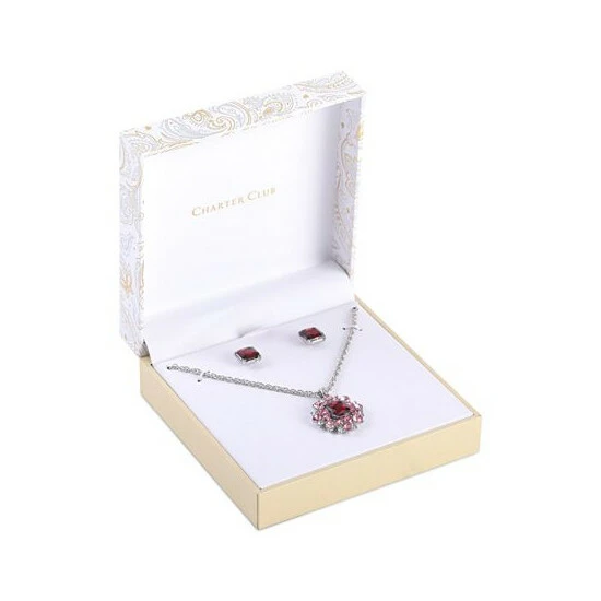 The perfect gift for even yourself, this Charter Club boxed set includes a luminous flower pendant necklace and square stud earrings.