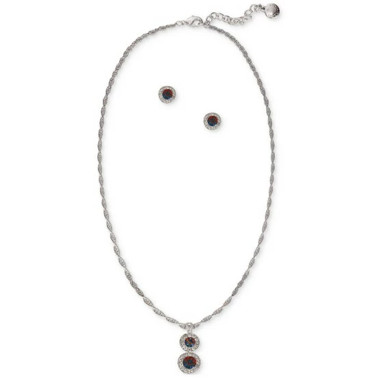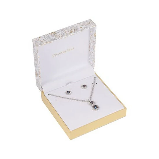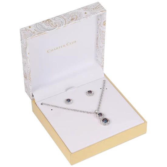 A double halo pendant necklace joins complementing studs in this stylish boxed gift set designed by Charter Club.