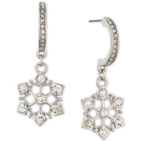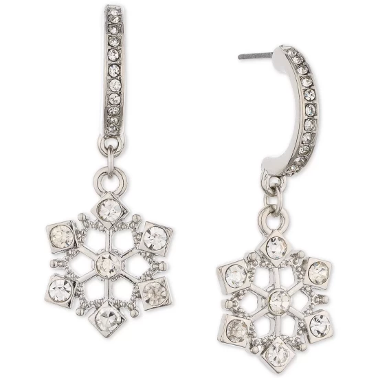 Small J-hoops are enhanced with dangling snowflake-shaped charms on these pavรฉ-decorated earrings from Charter Club.