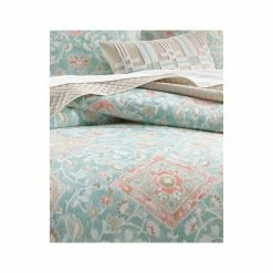Evoke the feeling of the desert with the Damask Designs Terra Mesa Duvet Cover Set from Charter Club, featuring a smooth sateen finish and turquoise ground.