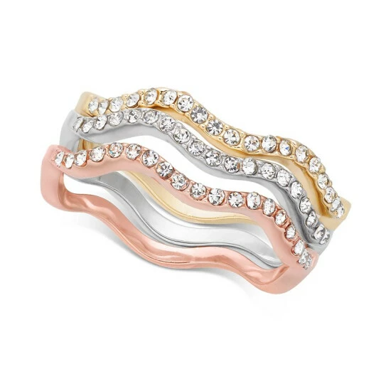 Get triple the style with this three-piece pavé-accented wavy rings set by Charter Club. Fashioned in silver-tone, gold plate and 18K rose gold plate. Size 5 to 11.