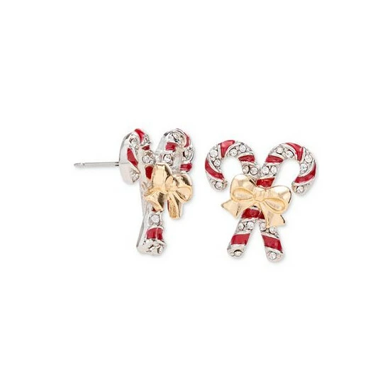 A pair of glittering candy canes are tied together with a bow on these sweet Charter Club stud earrings.