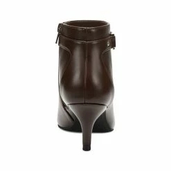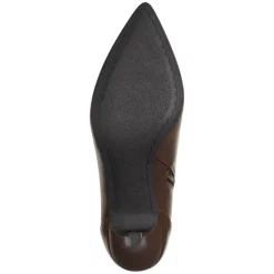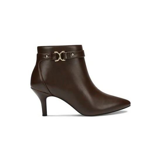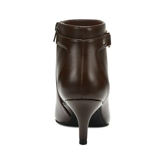 - Pointed-toe ankle booties with inner ankle zipper closure