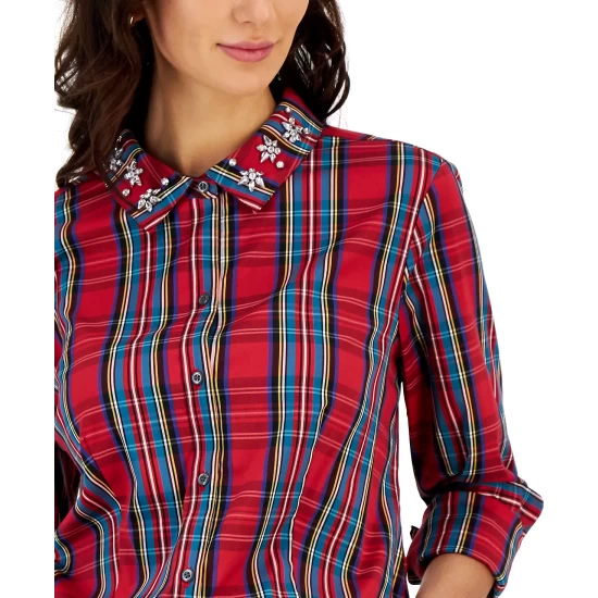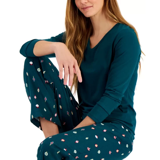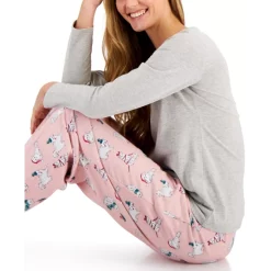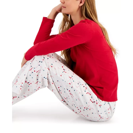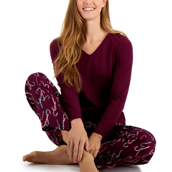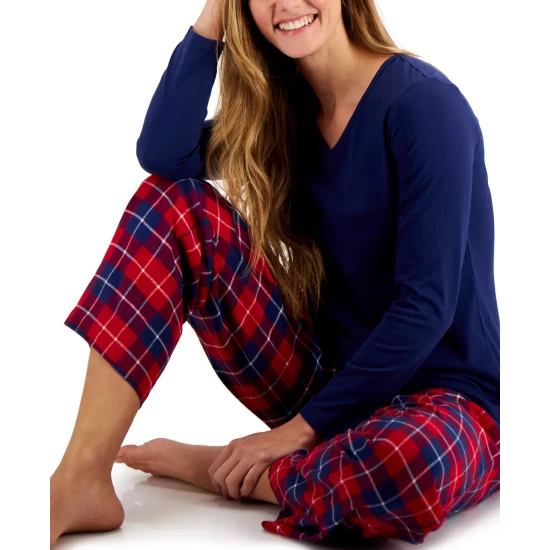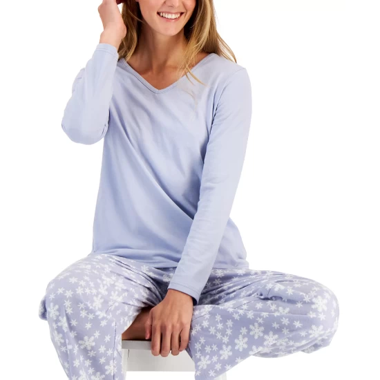 Charter Club combines a long-sleeve T-shirt with printed flannel pants in this cozy pajama set.