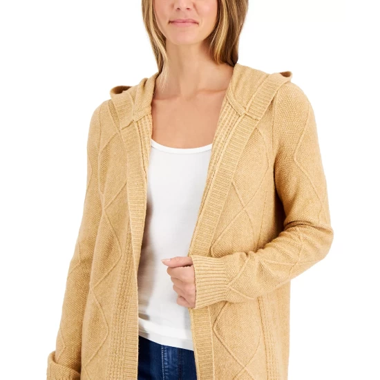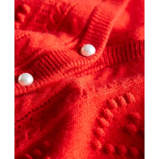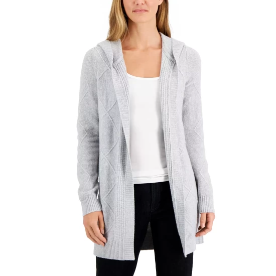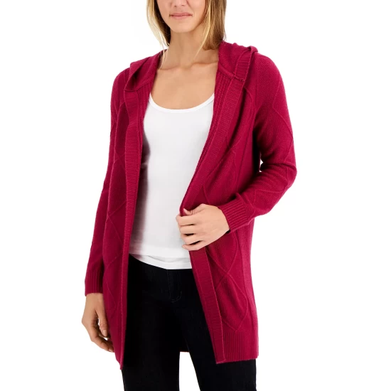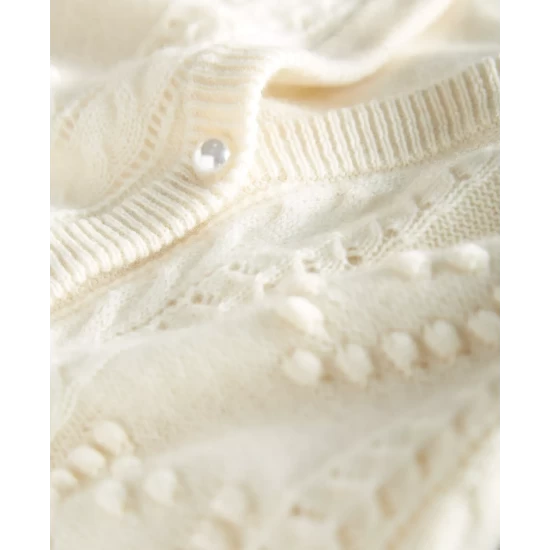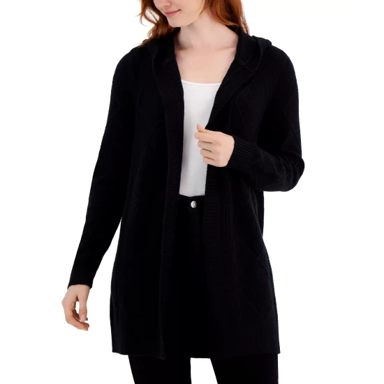 Adorable pom pom hearts lend a little charm to this luxurious cashmere cardigan from Charter Club.