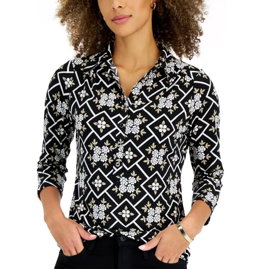 Ease into style with this Charter Club top, complete with a neckline accented by a point collar and an all-over beautiful print.