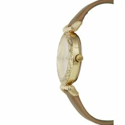 - Case: round gold-tone; 33mm; crystals at bezel