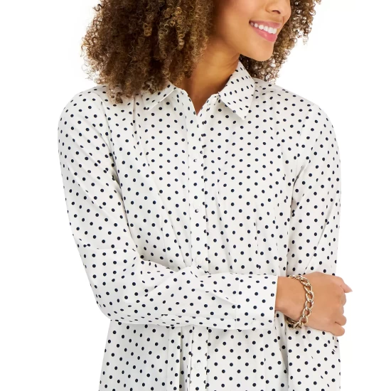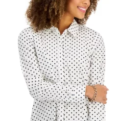 Revamp your button-up style with this charming dot print top from Charter Club.