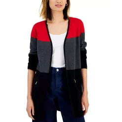 A bolder version of the classic open-front cardigan, this colorblocked cotton option from Charter Club also has zippered pockets to hold the essentials.