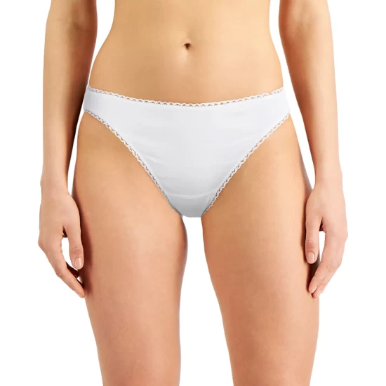 Lace trim adds a pretty touch to Charter Club’s Everyday Cotton collection in these comfy and classic cotton bikini underwear. Style #100097458
