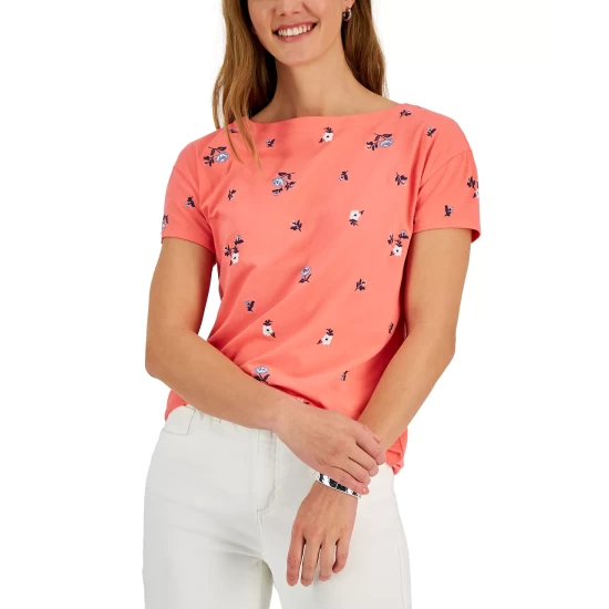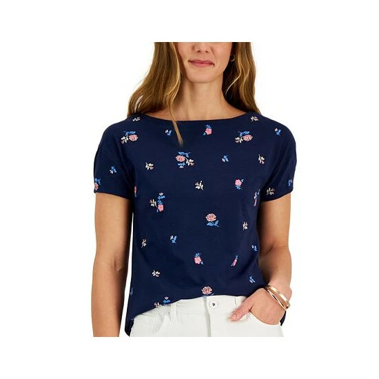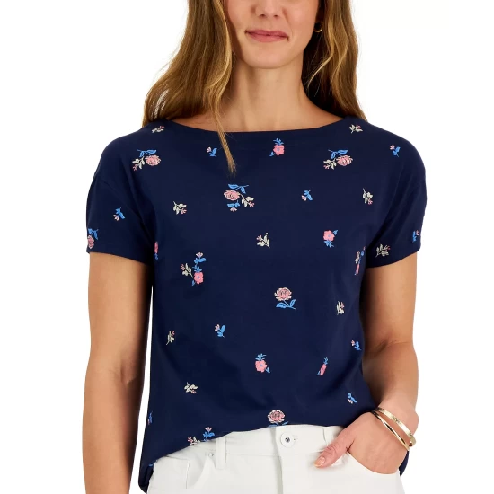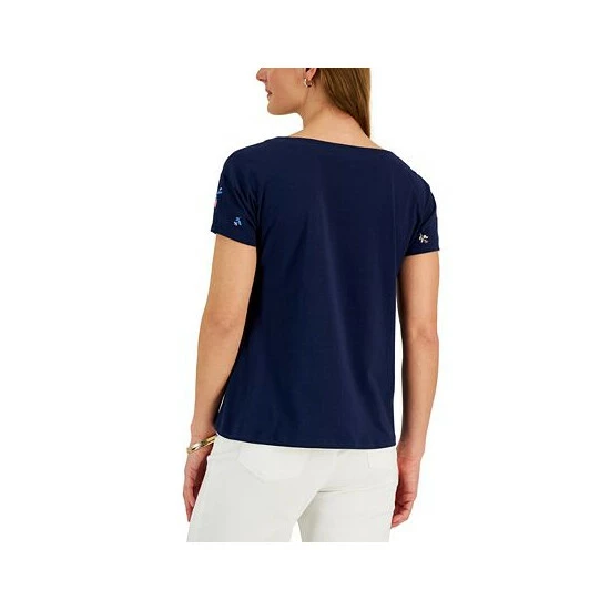 Classic meets contemporary in this Charter Club top, a comfy knit piece with floral embroidery and drop shoulders.