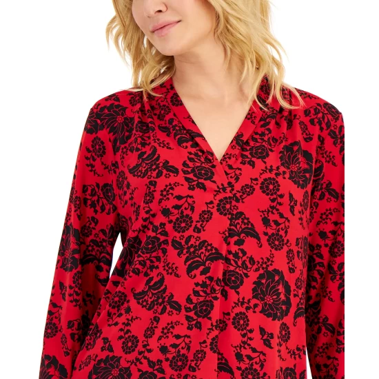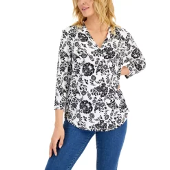 Bold contrast florals freshen this look from Charter Club, a knit top polished with a surplice neckline.