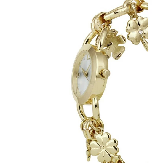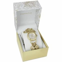 Flower charms with crystal accents add a hint of whimsy to this dramatic timepiece from Charter Club.