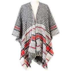 This bold houndstooth-plaid topper wrap from Charter Club has playful fringe detail and an open front, making it a fantastic layering option.