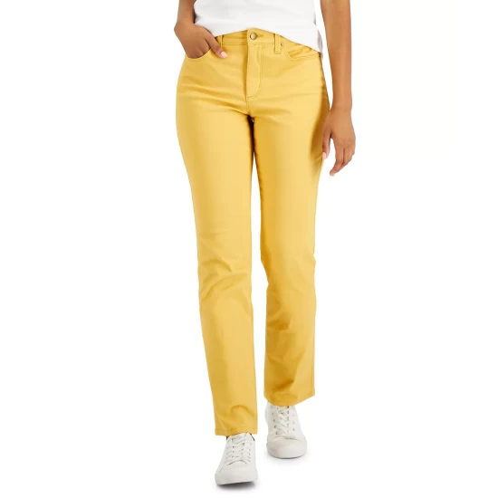 Designed with a modern mid rise and sleek straight-leg silhouette, these chic jeans from Charter Club are a fabulous wardrobe essential to pair with all your favorite tops and T-shirts. Dress up the flattering tummy-control style with a polished blazer and some statement heels or keep your look casual with a graphic-print T-shirt and sneakers or flats. Grab your bag and you’re ready to conquer anything!