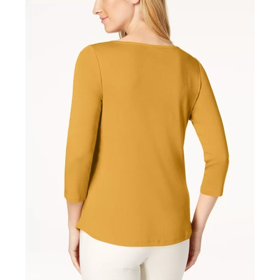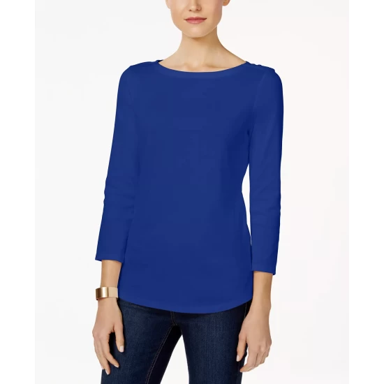 Keep your ensemble simple and sophisticated with Charter Club’s boat-neck top, finished with subtle shoulder buttons.